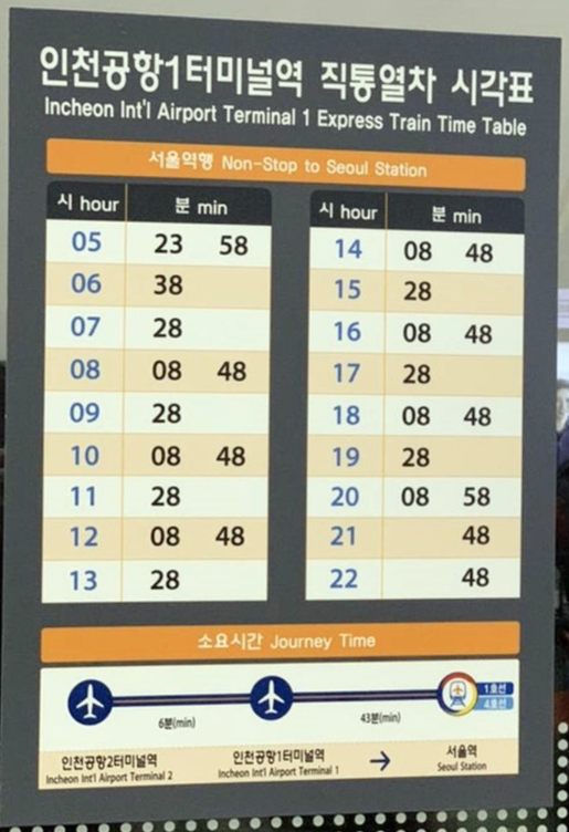 - 인천공항직통열차 시간표(서울역↔인천공항, 전 시간표 전체 공개)