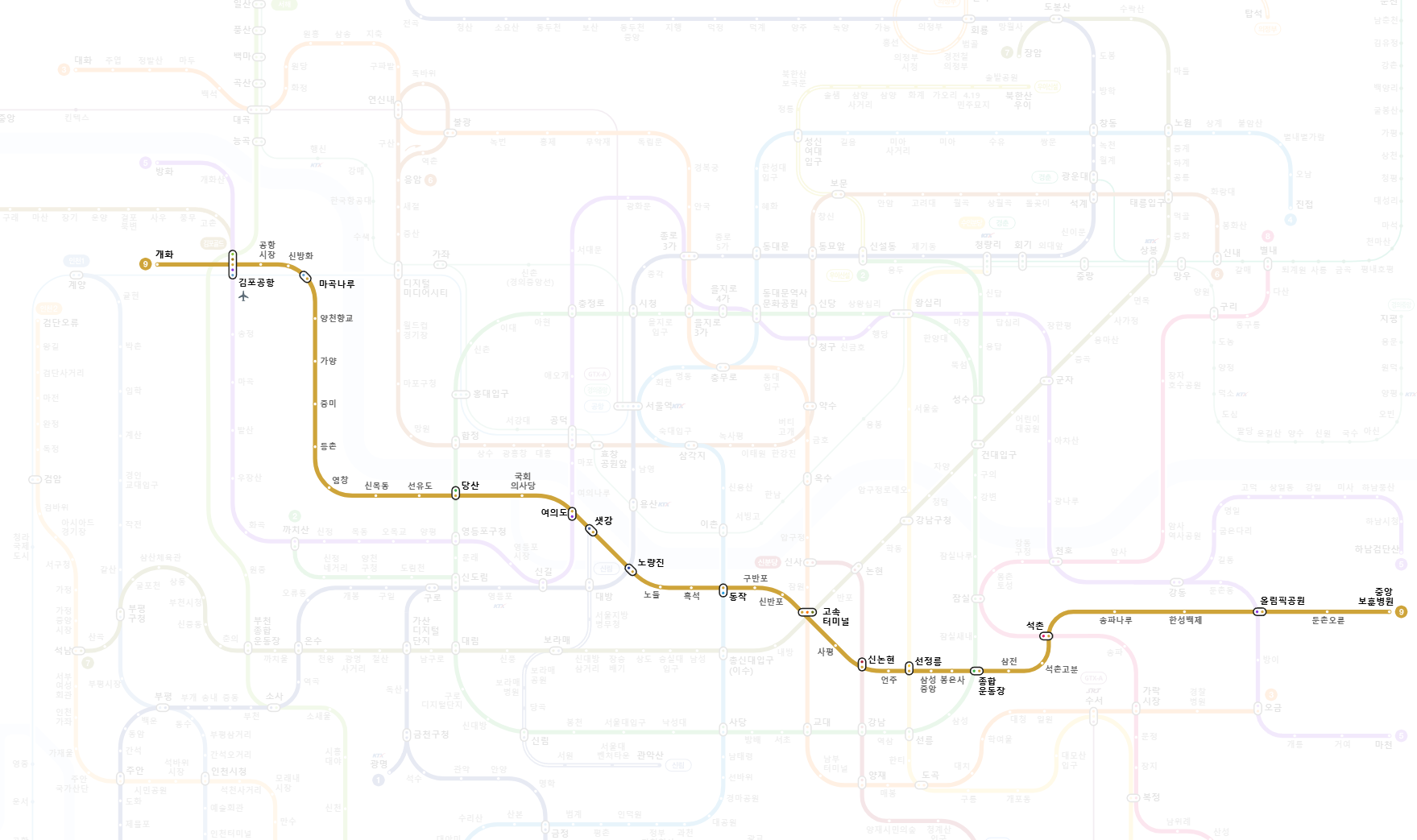 🚉 2. 9호선 급행 정차역 한눈에 보기