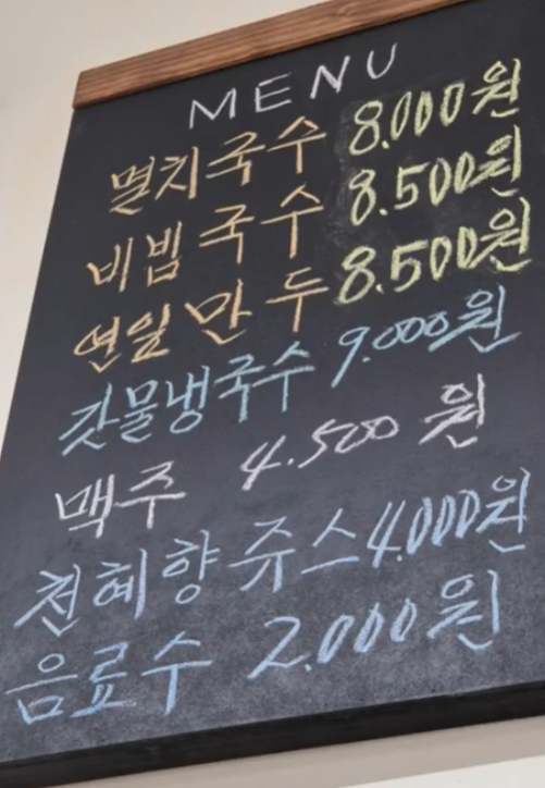 | 비빔국수 | 8,500원 | 14가지 채소와 매실청 양념장 |